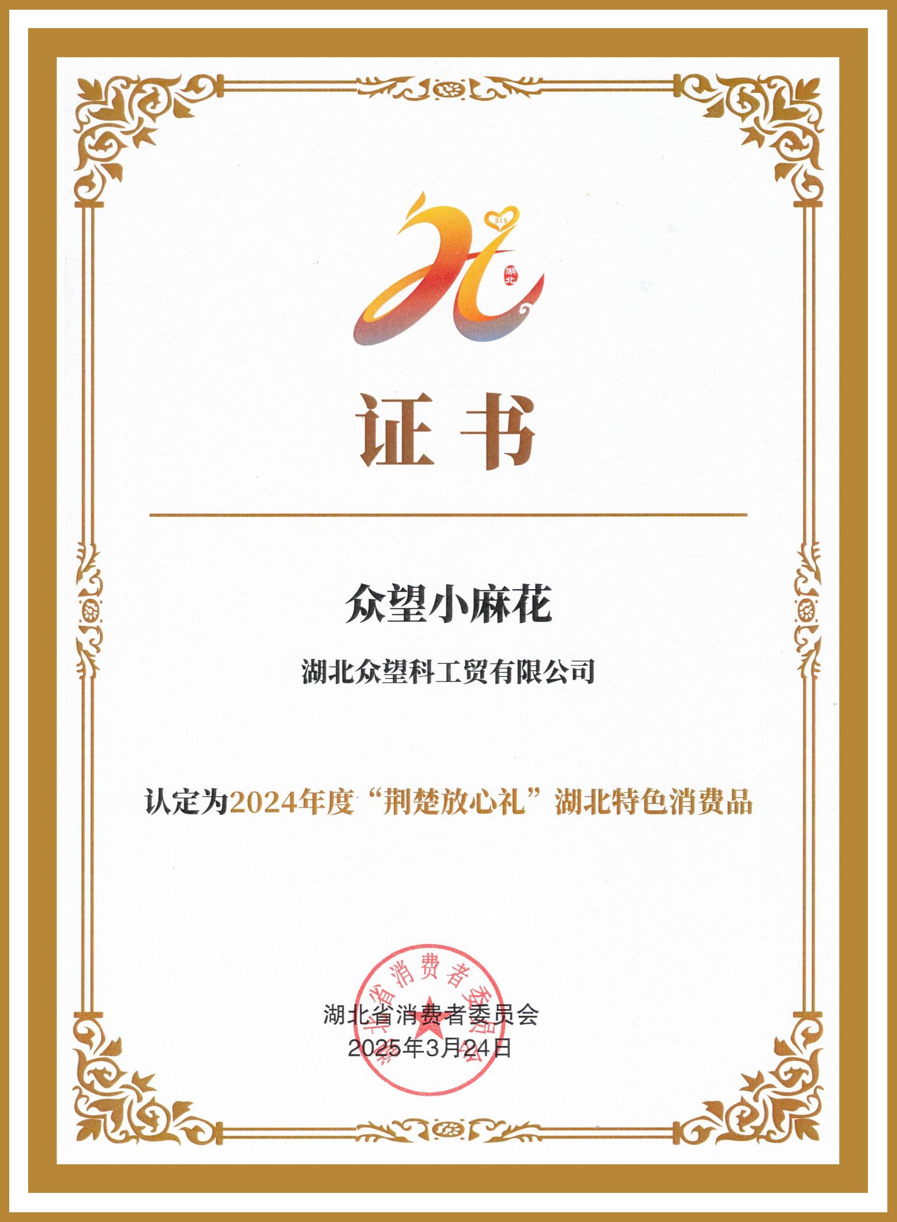 評選為2024年度“荊楚放心禮”湖北特色消費品