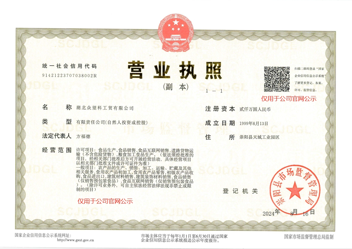評選為2024年度“荊楚放心禮”湖北特色消費品